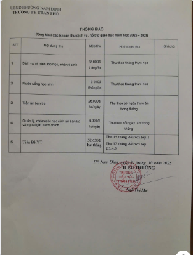 Công khai các khoản thu dịch vụ, hỗ trợ giáo dục năm học 2025- 2026